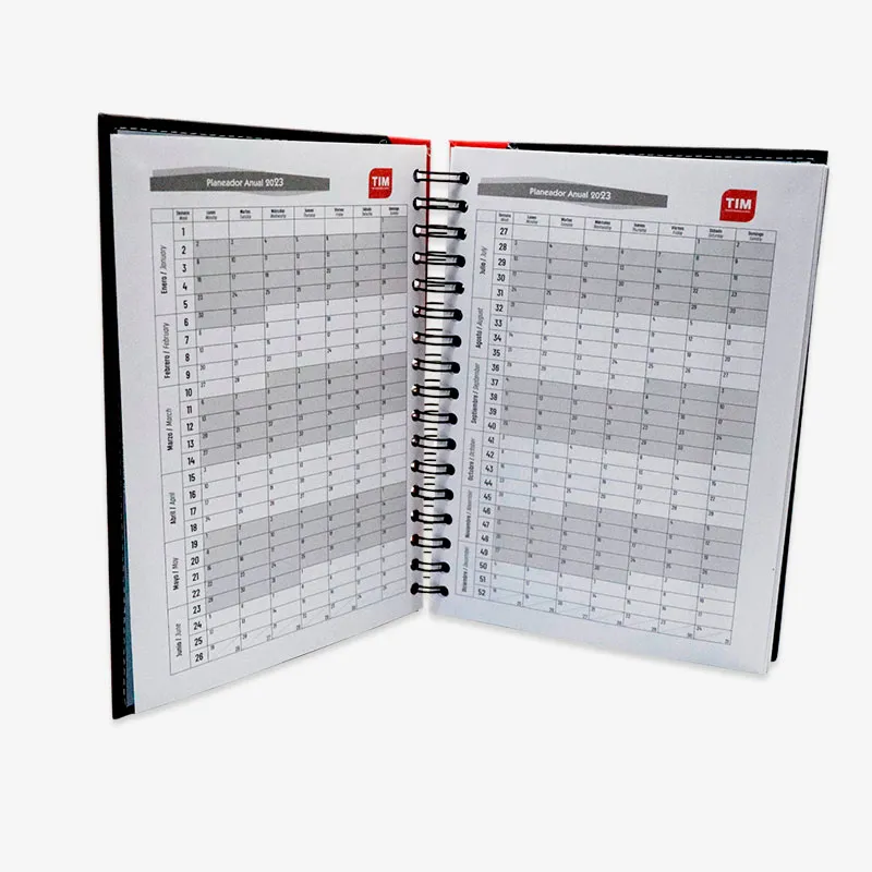 Pasta dura en vinil quemante (Curpiel) color a elegir con grabado de logo en seco.